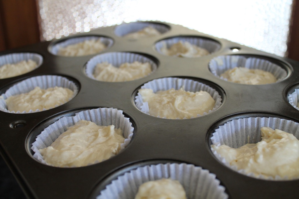If the quantities in the photos look larger than the ingredients suggest, it is because I made a double batch – some for the dozen cupcakes featured in this blog post today, and two round cake layers to be assembled in a week or so for my birthday cake. Stay tuned for photos of that.
