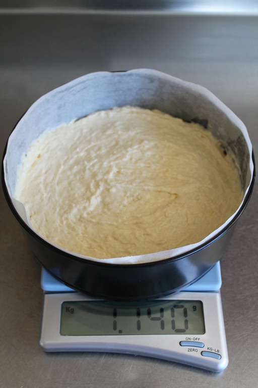 Because I was making two layers, I weighed each layer in the tin to ensure they were roughly the same weight. Baking time for the two layers was about 35 minutes, but if making one thicker cake, bake for approximately 40 minutes then test for done-ness with a skewer and adjust baking time if necessary.